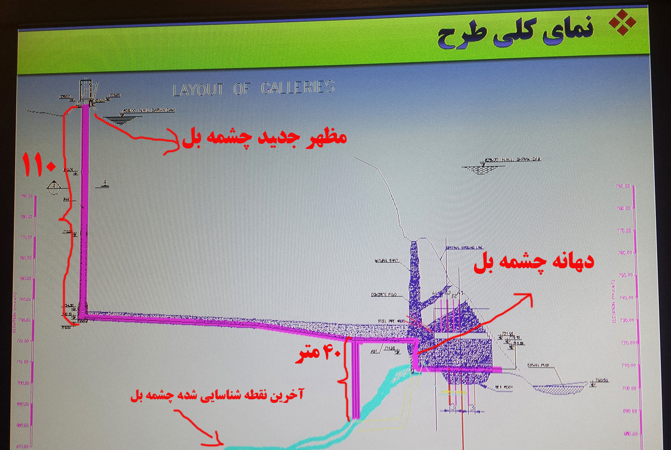 وی افزود: با احداث یک تونل 220 متری در پشت دهانه چشمه بل و انجام مطالعات گسترده در شناسایی مسیر اصلی این چشمه به نتیجه ای نرسیدیم و بنابراین به این پی بردیم که مسیر اصلی آن می تواند در عمق بیشتری از کوه قرار داشته باشد و به همین خاطر به احداث شش تونل و گمانه دیگری در اطراف این چشمه اقدام کردیم و مجددا مطالعات ما بی نتیجه ماند.