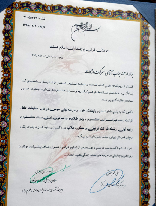 گفتنی است که این دوره از مسابقات ، دوره نهایی آن را پشت سر گذاشت ، در این مرحله طلبه و حافظ بخشی از قران کریم پاوه ای توانسترتبه اول را در رشته قرائت، ترتیل ویژه اهل سنت کشوربه خود اختصاص دهد.