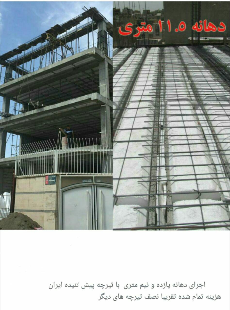وی ادامه داد: ولی اکنون این نوع تیرچه ها با مقاومت بالا و دهانه های مختلف تا 12 متر می توانند این امکان را برای مالک فراهم نمایند که با خواست و دلخواه خود مساحت هال و پذیرایی خود را تعیین کند.