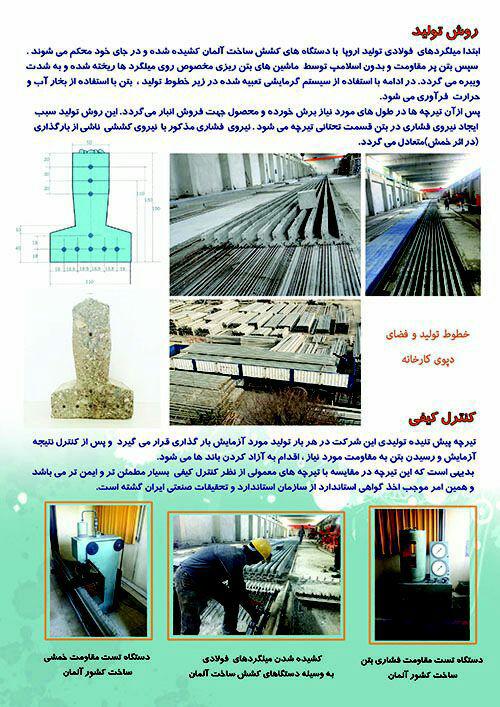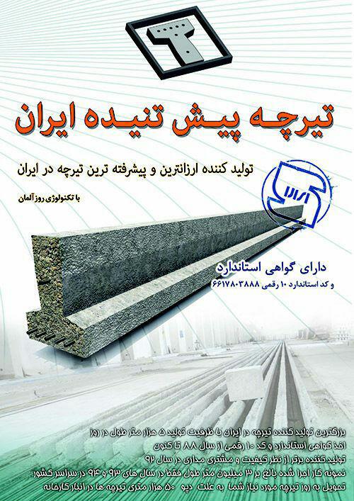 وی خاطر نشان ساخت: تیرچه های پیش تنیده تولیدی شرکت تیرچه پیش تنیده ایران مطابق با استاندارد ملی تولید می شود و گواهی استاندارد از سازمان استاندارد و تحقیقات صنعتی ایران را دارد که ما نیز اقدام بهاخذ نمایندگی انحصاری آن برای سطح استان واقع در شهرستان پاوهنموده ایم.