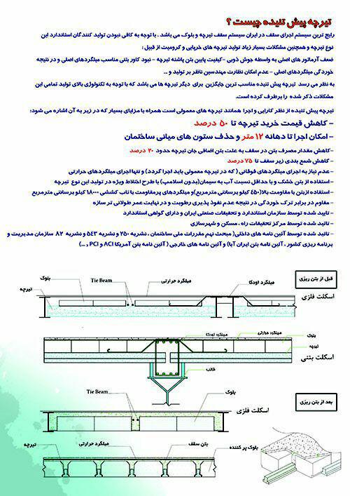 وی افزود: این تیرچه ها علاوه بر صرفه اقتصادی بسیار بالا، از لحاظ کیفیت و عملکرد قابل مقایسه با دیگر تیرچه ها نمی باشد و همچنین می تواند مهندسین معمار را در معماری مورد نظر مالک، ازاد و طراحی مطلوبی را برای مالک ایجاد نماید.