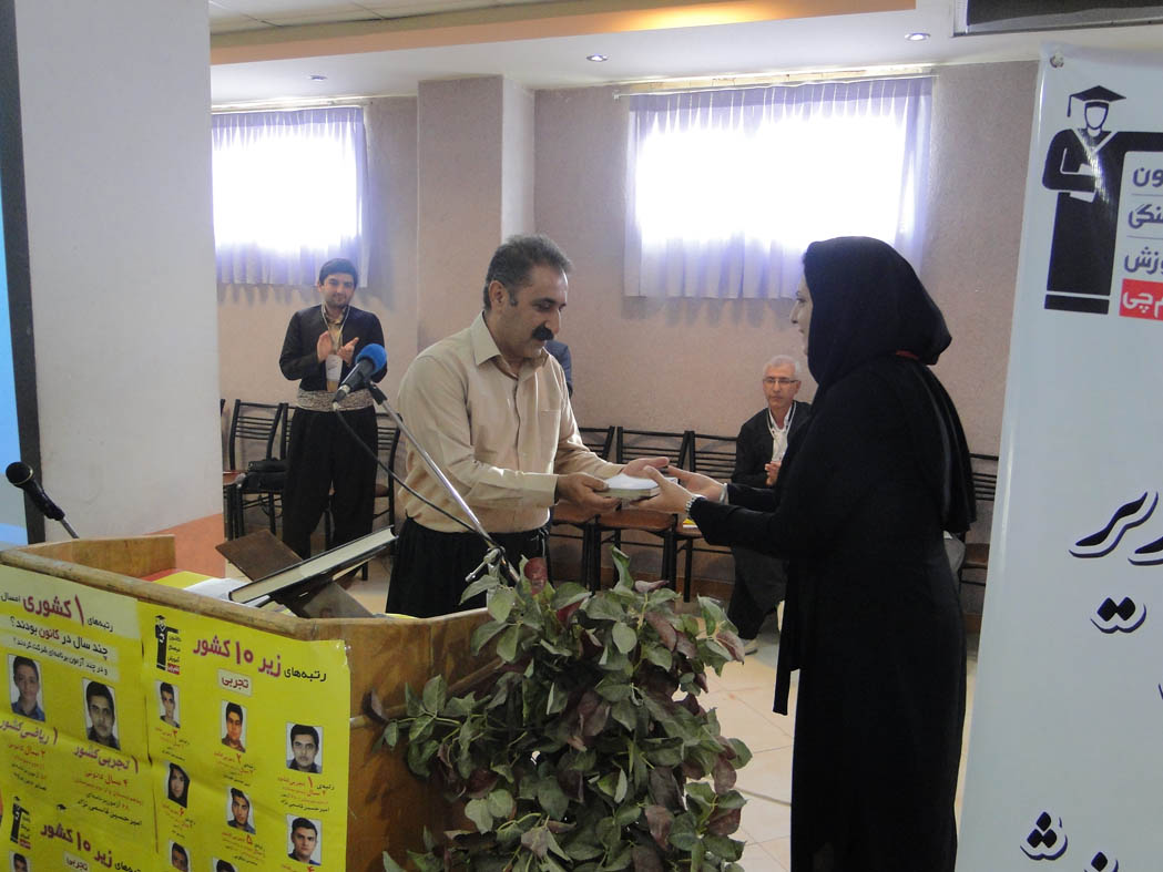 در ادامه عدنان مرادي از شاعران شهرستان به جهت تقبل زحمات خانم صافي پور مدیر کانون قلم چی اورامانات ، با اهداي دو جلد كتاب خود تقدير و تجليل به عمل آورد.