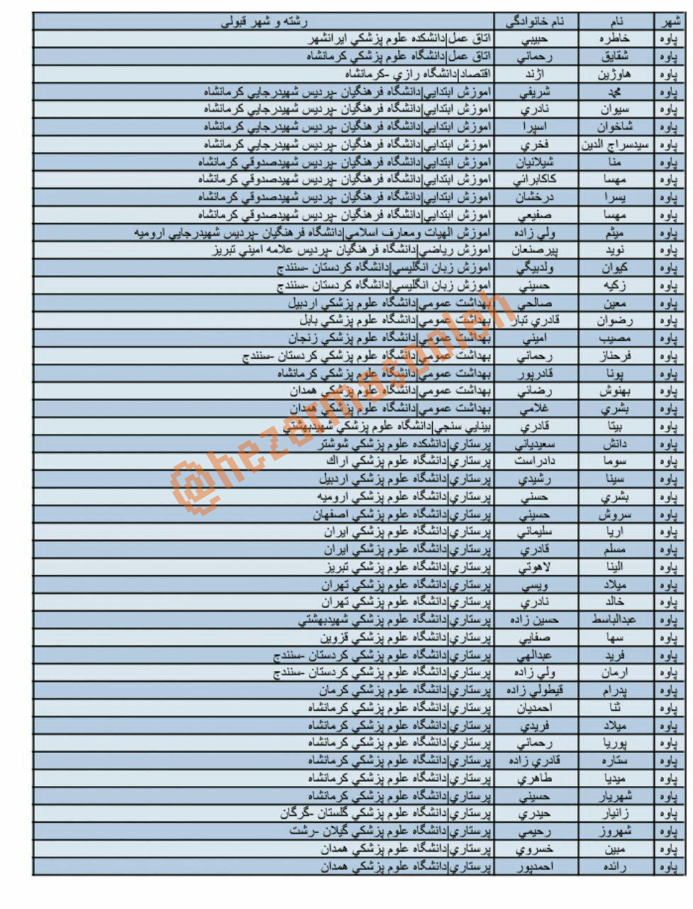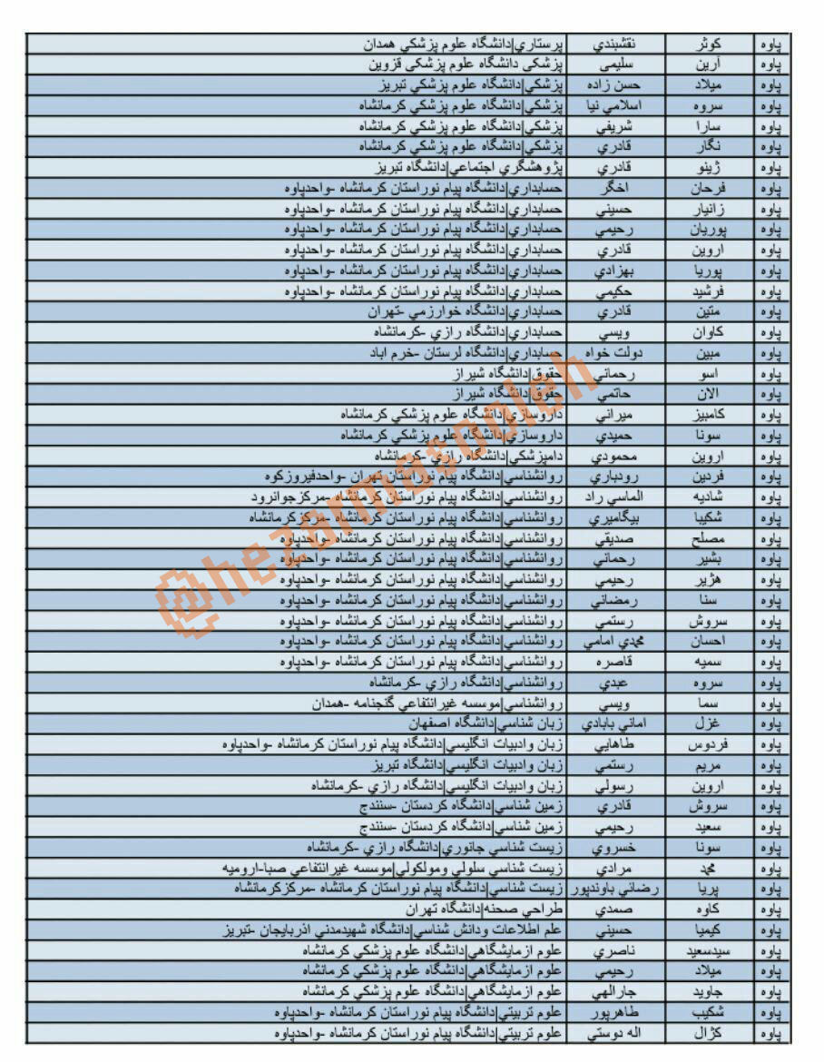 با تشكر از خانم ندا صافي پور مدير كانون آموزشي قلم چي شهرستان پاوه در ارسال اسامي
