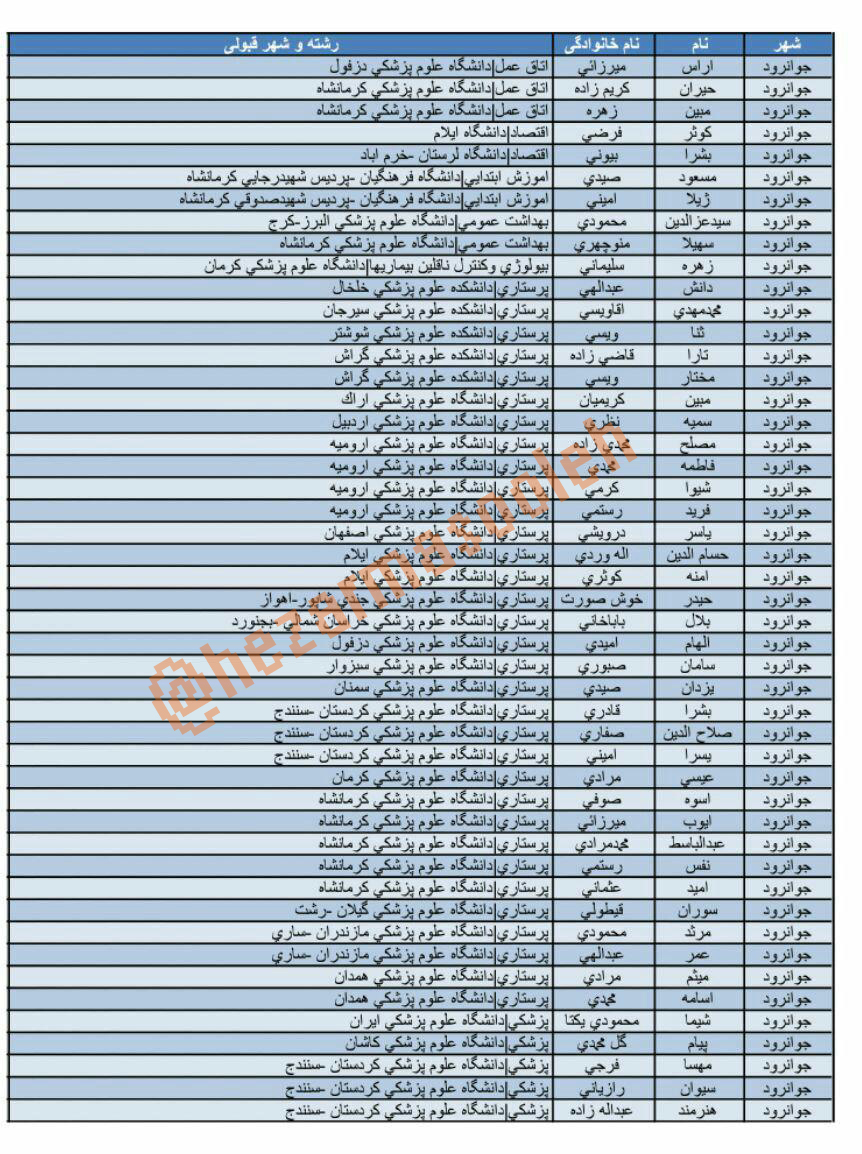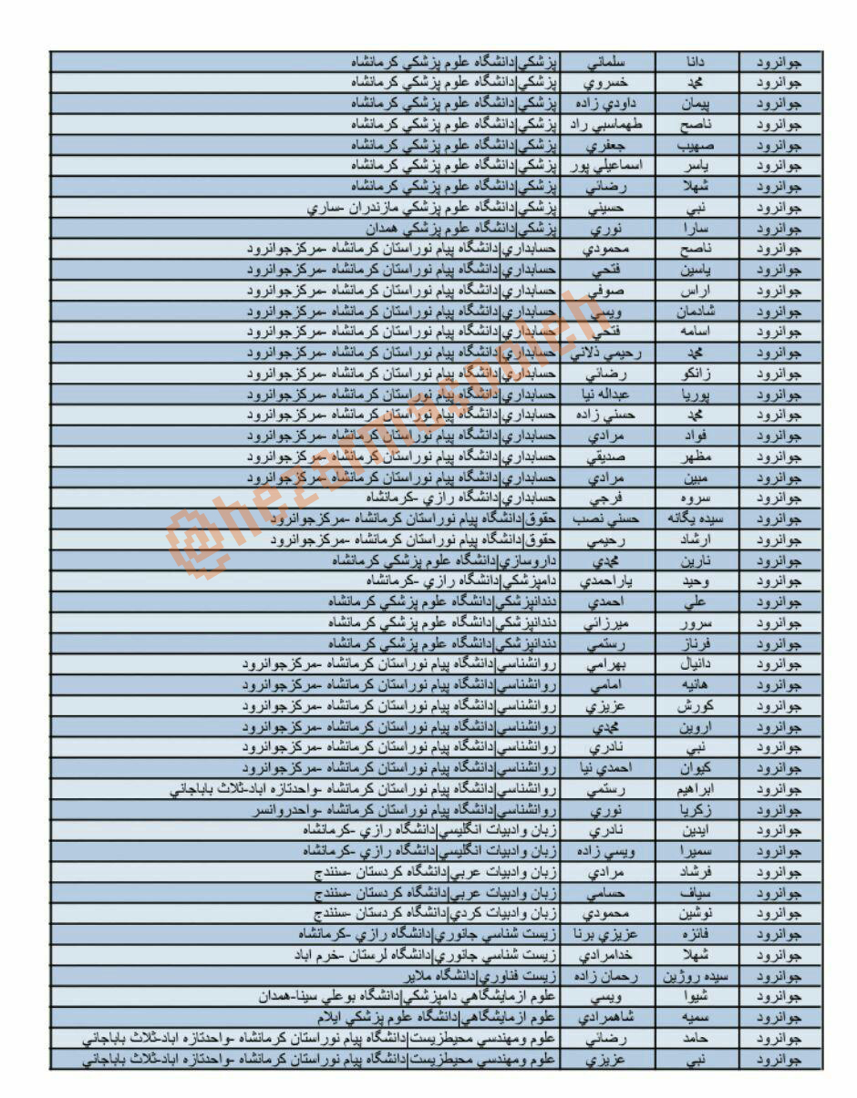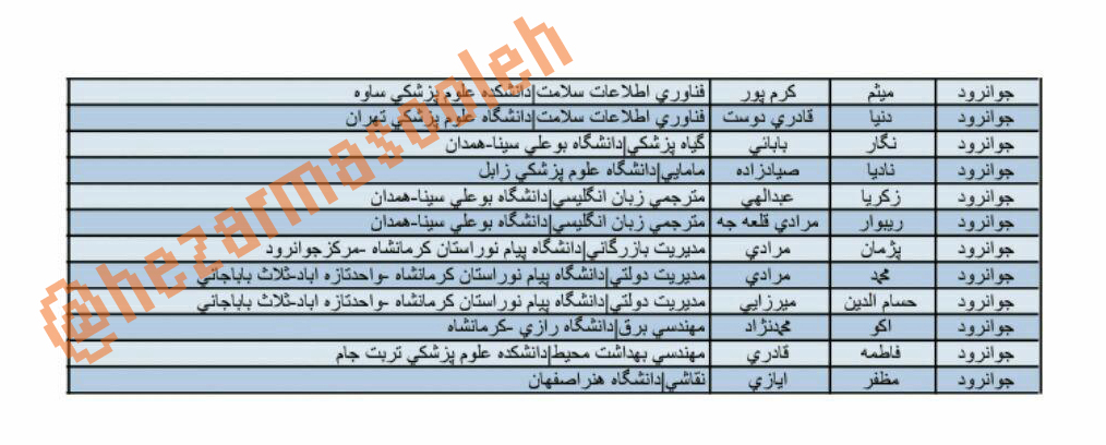 نتايج قبول شدگان آزمون سراسري در شهرستان هاي جوانرود و ثلاث باباجاني