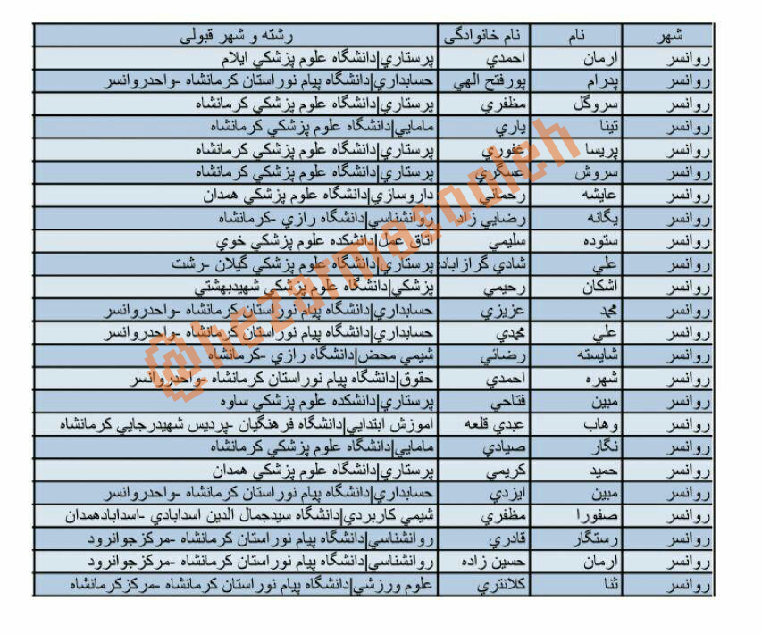 نتايج قبول شدگان آزمون سراسري در شهرستان روانسر