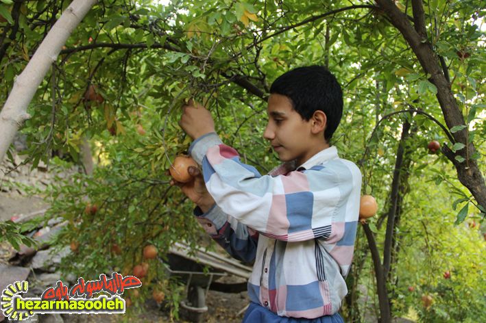 این نوجوان فعال با اشاره به فعالیت روزمره خود ادامه می داد: هر روز ساعت 5 صبح بیدار می شوم و تا ساعت 7 درختان را آبیاری می کنم و سپس مسافت 35 دقیقه ای تا مدرسه را بدلیل آنکه خانه ما در پایین روستا و در باغات قرار دارد طی می کنم ، پس از آن از مدرسه که بازگشتم به امورات خانه و باغ می پردازم و الان هم که فصل برداشت انار است هر روز تا نزدیکای ساعت 23 انارهای ترش را برای رب انار جدا و آماده کرده و از ساعت 23 تا 24 هم به درس خواندن مشغول می شوم و معدل درس خواندنم هم 19/65 صدم است.