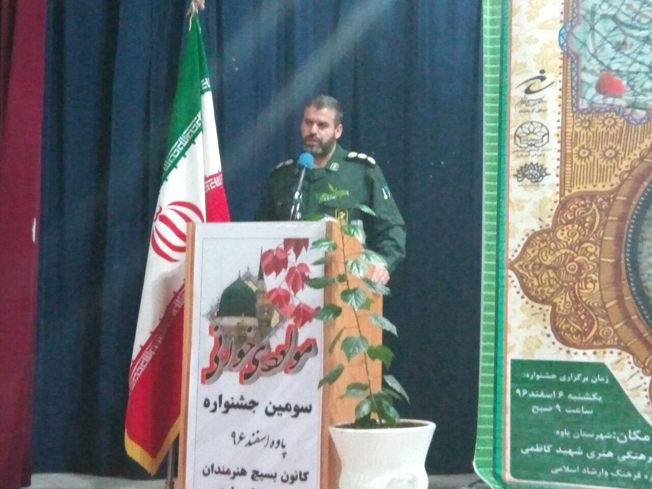 فرمانده ناحيه مقاومت بسيج سپاه پاوهنيز در اين مراسم در سخناني اظهار داشت: يكي از ارزشهاي ديني ما هنر ديني و انقلابي است كه آميخته با دين مي باشد و در بحث موسيقي، به موسيقي آئيني معروف است.